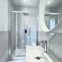 The master bedroom includes a private bathroom with luxury finishes. The second bedroom on the ground floor also has a private bathroom, while the third, modern and functional, features a spacious shower and double sink for maximum convenience.