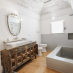 In main trullo: master bedroom with premium mattress, closet, authentic en suite bathroom with bathtub carved out of stone, large sink and mirror, second double bedroom with spectacular view of sculpted roof from inside, adjoining bathroom with shower, toilet and sink, bright entrance hall with two additional single beds on request, living area with two comfortable sofas, fireplace, table for intimate dinners, fully equipped kitchen with refrigerator, freezer, stove, microwave, dishwasher, pots, cutlery, stemware, coffee maker. Possibility 2 more single beds for large groups.