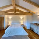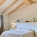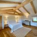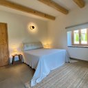 The upper floor houses the sleeping area, consisting of two cozy double bedrooms, both with exposed wooden beams and en suite private bathroom, warm and refined spaces that combine traditional charm with contemporary lines.