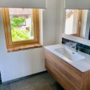 The property, finely renovated, is on two levels. On the ground floor, a large and bright openspace living area welcomes living room, kitchen and dining area, enhanced by large windows overlooking the garden and the pool, creating a harmonious dialogue between inside and outside. Completing the floor is a bedroom with en suite bathroom, a service bathroom and a convenient laundry room.