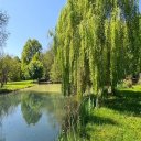 Then, my lords, the throbbing heart of the property opens up. A natural theater, an amphitheater of greenery! Round, generous trees, dancing in the breeze: linden trees, youthful oaks, perhaps even some vain mulberry trees. No stage, no curtain: just the sky, the grass and the magic.