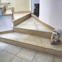 The staircase that leads us to the sleeping area is another element that characterizes the whole house, marble and glass blend together in contrast between classic and modern extremely pleasant.