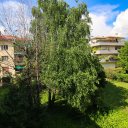 The apartment is spread over a generous square footage: the entrance opens onto a large living room with original wooden floor, which retains all the charm of the period. From here there is access to a comfortable terrace overlooking the park, ideal for relaxing moments with the family.