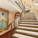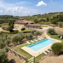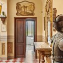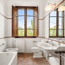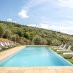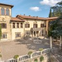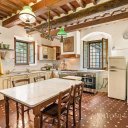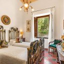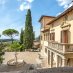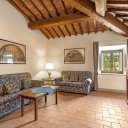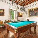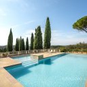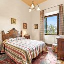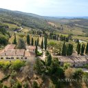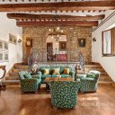 Unique heritage mansion on a 395-acre Gallo Nero estate, winery, oil mill, chapel, 2 pools, and farmhouses for sale in Castellina in Chianti, Siena. At 450 m above sea level, with a truly breathtaking panorama, Le Capraie Mansion dates back to the 17th and 18th centuries and dominates a 395-acres (160 hectares) estate boasting prestigious vineyards producing over 110,000 bottles of the finest Chianti Classico Gallo Nero DOCG wines each year. A classic cypress trees driveway leads to the main park featuring an Italian-style garden designed with fountains, belvedere terraces, elegant balustrades and travertine colonnades. Here is set a swimming pool with spectacular scenery and dominated by the splendid main façade of the villa, perfectly preserved in its original Vanvitellian-style architecture, with a tower, colonnades, arched windows, Renaissance-style stone decorations and a main entrance porch surmounted by a terrace. The interiors star charming and bright living areas throughout paired with antique furniture and fine decorations. The entrance hall has a grand staircase and wrought iron balustrade and connects three main reception rooms, two fabulous dining halls, one very impressive has over 6 meters high ceilings with central trusses and great arched windows, snooker room, study with library and 8 ensuite bedrooms. Amongst the park, a separate church building preserves Roman numeral dates and family names engraved in stone on the portal and main facade, and houses a consecrated chapel where private Catholic ceremonies are still celebrated. Slightly detached from the park are the 15th-century traditional stone farmhouses converted into 11 holiday apartments and a single-family villa, providing a total of 24 bedrooms, all in a rustic country chic style and with access to a second swimming pool. A typical hamlet, dating back to the 14th century, is the beating heart of the farm and houses a wine cellar with a fully equipped winemaking facility, cellars with oak barrels, vaulted rooms for wine aging, tasting rooms, a shop, offices, as well as an oil mill, farm outbuildings and staff quarters. The land is cultivated according to the centuries-old Tuscan tradition, is certified 100% organic, and includes 19.4 hectares of Chianti Classico Gallo Nero DOCG vineyards, 21 hectares of olive groves with 5,500 trees, a private lake, 105 hectares of woods, orchards, and arable land. Strategically located in the heart of Chianti Classico wine region, south of Florence and 25 km north of Siena, at an easy reach to all main Tuscan sites and road connections. The town center of Castellina in Chianti with shops, bars and all amenities it is at just 10 minutes’ drive, 7 km, with no gravel road.