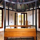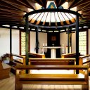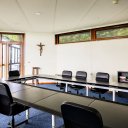 Accommodates the common spaces: entrance hall, living room, meeting room, three guest rooms with two bathrooms, sacristy, TV room, two chapels, office with waiting room, music room, two storerooms, laundry and three bathrooms. Versatile spaces for reception, collective and administrative activities.