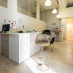 The upper floor is the beating heart of the commercial part with an elegant waiting area: a brightly lit open exhibition space, surrounded by glass windows, perfect for showrooms. To complete the spaces we find reserved offices, meeting room and additional display areas, all with attention to detail.