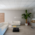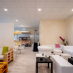 The separate entrance with independent reception elegantly welcomes employees and customers, while the interior areas include a canteen area and toilets.