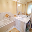 The house developed on two floors , characterized by large and bright spaces perfectly finished in polychrome marble is composed of sleeping area on the first level with a ´large master bedroom equipped with a luxurious , large private bathroom with Jacuzzi. On the same floor other 2 double bedrooms with second and third bathroom finished in marble, all complemented by parquet floors and custom-made oak cabinets that give the entrance idea of welcome and warmth.