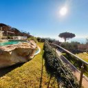 Liguria, Alassio, wonderful furnished villa for sale less than 5 km from the sea; complete with everything with infinity pool and breathtaking sea views over the entire Gulf of Ponente. The prestigious manor villa is about 240sqm that are developed on 3 levels connected by a refined staircase all in Carrara Marble; on the second and top floor we find a wonderful bedroom with private bathroom and double terrace, a smaller one with stunning sea view and one that can be verandas with hot/cold split predisposition. On the first floor, on the other hand, we find the main entrance with spacious hallway, a bathroom with shower and the sleeping area with a master bedroom with private windowed bathroom and bathtub also all in marble, a second double bedroom with walk-in closet and finally a panoramic terrace with attached wooden loggia for a total of about 150 square meters. On the ground floor we still find two bedrooms; one of which has a private bathroom and storage room. The living area consists of a spectacular living room with fireplace and windows from which you can enjoy the spectacular garden, pool, sea and Gulf view that leaves you breathless even on bad days. And finally we have the very bright kitchen that overlooks the outside of the villa with small service bathroom.The exterior of the Property is almost indescribable by how beautiful, well-maintained and meticulously maintained it is; Here too nothing is lacking, we have an electric pergola on the outside of the kitchen, bbq area, very special infinity pool with night lighting with attached hot/cold water shower. All around this luxury residence we find a vast park that houses an annexe / garage, various storage rooms, pool pump room, uncovered and covered parking spaces, olive trees, lemon grove, autoclave, irrigation throughout the park, alarm system, SOLAR PANELS. All that remains is to view it! For more information do not hesitate to contact us.