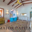 Inside, the typical emerald style is evident in the fine fabrics and custom-made, elegant and classic furnishings, accompanied by exposed wooden beams, large spaces and high ceilings. The whole ensemble gives the villa a timeless aura of prestige.
