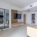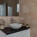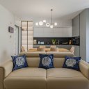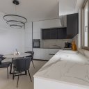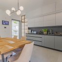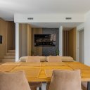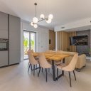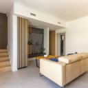 At 30 meters away from the sea, in one of the most central streets of Palese, we offer an exclusive terraced residence. The property is divided on three levels and with two independent entrances which allow a division of the villa into two units. Starting from the external entrance we find a patio with a large parking space and a small garden with ornamental plants. On the ground floor we find an entrance with living room/kitchen in open space, a door effectively divides the living conversation area from the sleeping area where we find two large bedrooms and two bathrooms. In the basement we find a relaxation area with bar corner, game room and large storage room, a large living room/kitchen in open space, a bedroom with walk-in closet and bathroom. The property is newly built dating back to 2021 in class A4 and is equipped with photovoltaic system that allows for significant energy savings, solar thermal system, underfloor heating system, ducted cooling system. The building is by the way equipped with a home automation system of opening and video surveillance system with seven cameras. The upper floor consists of a room and a large level terrace with open sea views. The property is delivered with all handcrafted furnishings.