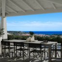 Inside, the ground floor hosts a large open plan living room with open kitchen, a master bedroom and a bathroom. On the second floor are two additional bedrooms, one with an en suite bathroom, as well as a third full bathroom. The large panoramic windows and covered verandas offer a splendid view of the sea and the Mediterranean maquis, ensuring bright and airy environments.
