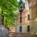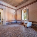 The villa, restored with careful conservation work, has regained its voice without losing authenticity: frescoes and stucco cornices gently resurface, wrought-iron railings and original fixtures reconnect with time, while solid surfaces and historic colors tell of the discreet nobility of an era.