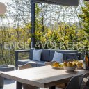 The stunning villa with absolute privacy and large windows represents the perfect blend of state-of-the-art technology, privacy and exquisite design. The main entrance, reserved and framed by the garden, leads to the majestic inlaid wood door, which opens the doors to a three-story residence designed for maximum comfort and a contemporary lifestyle. The ground floor greets us with the stunning 70-square-meter open-plan living space, consisting of a large, bright room with floor-to-ceiling windows and the modern industrial-style induction kitchen. Three spacious bedrooms with three bathrooms, two of which are en-suite, complete the ground floor. The private garden containing more than 1,000 plants, including many prized, exotic and rare ones, is ideal for entertaining guests during summer evenings and offers maximum comfort thanks to the outdoor kitchen and the beautiful lighted and heated veranda overlooking the greenery. Internal stairs lead to the second floor, where there is an apartment consisting of a spacious living and sleeping area, bathroom, large terrace with outdoor bathtub and stunning views of the hills and medieval castle. The above-ground floor, which is also connected internally, offers additional versatile spaces: an open space equipped with a large window overlooking the greenery and the inner cavern with Japanese garden and pond, a large equipped gymnasium, a wine cellar, and a laundry room. This floor is directly connected to the garage, capable of accommodating up to four cars and equipped with two 22 kW electric charging stations. The property excels on the energy front. It has two Sunpower photovoltaic systems: one 4.8 kW and one 19.8 kW supported by a 48 Kwh LiFePO₄ battery, a state-of-the-art Daikin heat pump, a Zehnder enthalpy controlled mechanical ventilation system, humidity control as well as heating and cooling on all floors. The villa, in addition to its A4 energy rating, meets NZEB (Nearly Zero Energy Building) criteria, and is completely energy self-sufficient. It is equipped with an advanced home automation system to manage heating, cooling, energy production, electricity and water consumption, lighting, automatic irrigation, remote opening, external entrance, and camera system with artificial intelligence, ensuring a modern and extremely safe living experience. Finally, included in the offer is a share in the ownership of the adjacent country club equipped with a newly renovated 25-meter swimming pool, tennis court, bocce court, children´s playground and restaurant.
