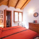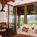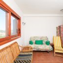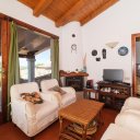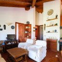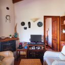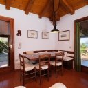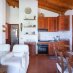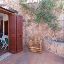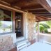 The entrance opens onto a spacious open-plan living area, filled with natural light thanks to the large windows framing the sea views. Terracotta floors and exposed dark chestnut beams create a warm and welcoming atmosphere, perfectly aligned with the Gallura architectural tradition. The space includes a comfortable living area, a dining zone, and a practical kitchen, ideal for daily living and for hosting guests.