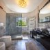 on the ground floor on open plan living area with open kitchenette, one double and one single bedroom, study, service bathroom and master bathroom with shower