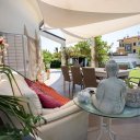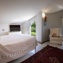 The fine finishes, made with precious marbles, give the villa an atmosphere of refined elegance. The 4 bedrooms and 3 bathrooms offer comfortable and cozy spaces, while the Bianco Gioia marble floor with red Collemendina inlays, the kitchen in Trambiserra and the open staircase in Bianco Gioia marble add a touch of luxury and prestige.