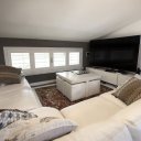 upstairs loft living area with relaxation area, master bedroom, bathroom with tub and walk-in closet