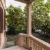 - Elegant exterior entrance with double staircase and sitting area.