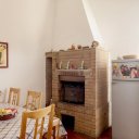 - Living room and large kitchen with fireplace.