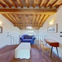 On the second floor , attic, with the perfectly preserved and treated antique terracotta floor repeats the floor sitting room, two large rooms of over 20 sqm and a bathroom with shower. In the first and second floor the ceiling is the typical Tuscan one with beams, rafters and bricks.