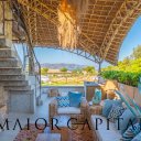 The villa has two independent levels, an architectural choice that guarantees versatility and functionality. The upper floor, reached by an external staircase, welcomes guests to a covered veranda overlooking the sea, perfect for outdoor dining and relaxing moments in the shade. The interior opens onto a bright living area with a built-in sofa and state-of-the-art open kitchen. The two double bedrooms, with attention to detail, offer comfort and charm, with pastel shades that amplify the light and create an enveloping atmosphere. Completing the floor are two modern bathrooms, elegant and functional, finished with natural materials and essential lines.