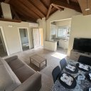 On the upper floor you will find a large open plan living area, which includes a bright living room and a modern kitchen. Completing the floor is a bedroom, an ante-bathroom and a bathroom equipped with both a bathtub and a walk-in shower. High wooden ceilings are the main feature of this room, giving it an exclusive charm and a feeling of space and airiness.