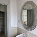 But it was as she passed through the dining room door that her breathing stopped. A large wooden table, solid and majestic, towered in the center. “All seven dwarfs can fit here!“ she exclaimed, turning in on herself with open arms. And there, a French door beckoned her toward a small terrace and a staircase that descended straight into the garden her own personal Enchanted Forest.