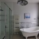 Then it was time for the staircase. The marble staircase wound around itself, mysterious. “It leads to the towers!“ he announced firmly, resting his hand on the brass handrail, shiny and cold. They ascended. Above, the realm of rest and dreams opened wide. Immediately, on the left, such a spacious walk-in closet made her eyes widen, “All the Queen´s ball gowns fit in here!“ she thought, imagining lavish gowns hanging in a row. “This is the Princess´s room,“ she then declared, stepping into the large, light-filled master bedroom with its own private bathroom all to herself. The other rooms were for guests, for dwarves, for anyone who needed a safe haven where stories could be born.